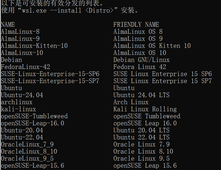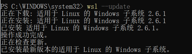 PS C:\WINDOWS\system32> wsl --list --online 适用于 Linux 的 Windows 子系统必须更新到最新版本才能继续。可通过运行 “wsl.exe --update” 进行更新。 有关详细信息,请访问 https://aka.ms/wslinstall 按任意键安装适用于 Linux 的 Windows 子系统。 按 CTRL-C 或关闭此窗口以取消。 此提示将在 60 秒后超时。