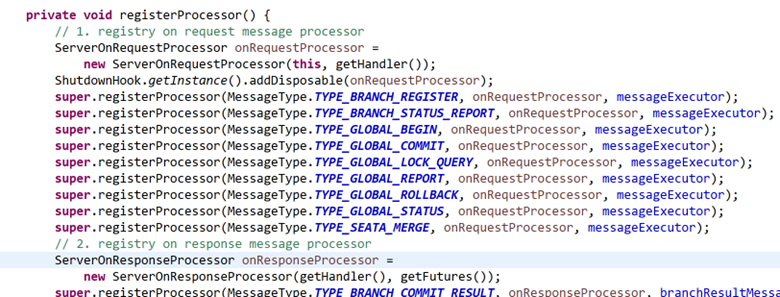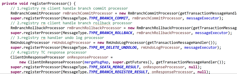 上图是tc处理tm,rm远程请求的处理器的注册点,也是分析tc端关键入口,从消息类型(MessageType) 知道消息的用途,