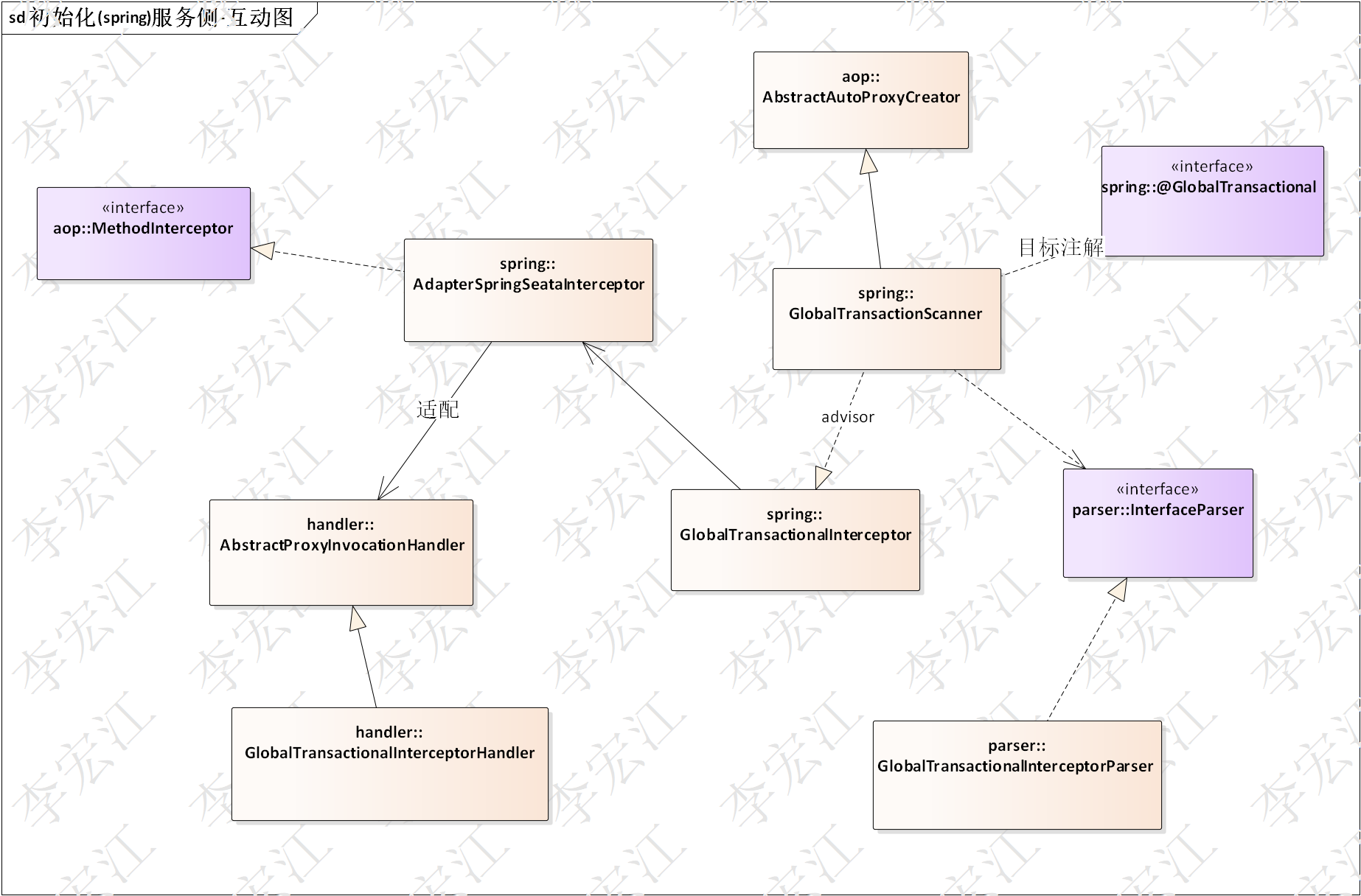 AdapterSpringSeataInterceptor spring aop的拦截器适配实现,适配seata自身机制的handler,这样设计可以让seata自身的handler使用其他织入框架,如,google juice