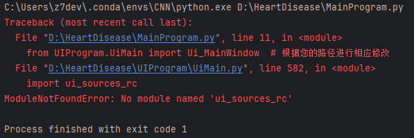 (1)没有运行 pyuic5 转换 .qrc 文件:.qrc 文件需要通过 pyuic5 转换成 ui_sources_rc.py,如果没有转换,程序无法找到对应的资源模块。