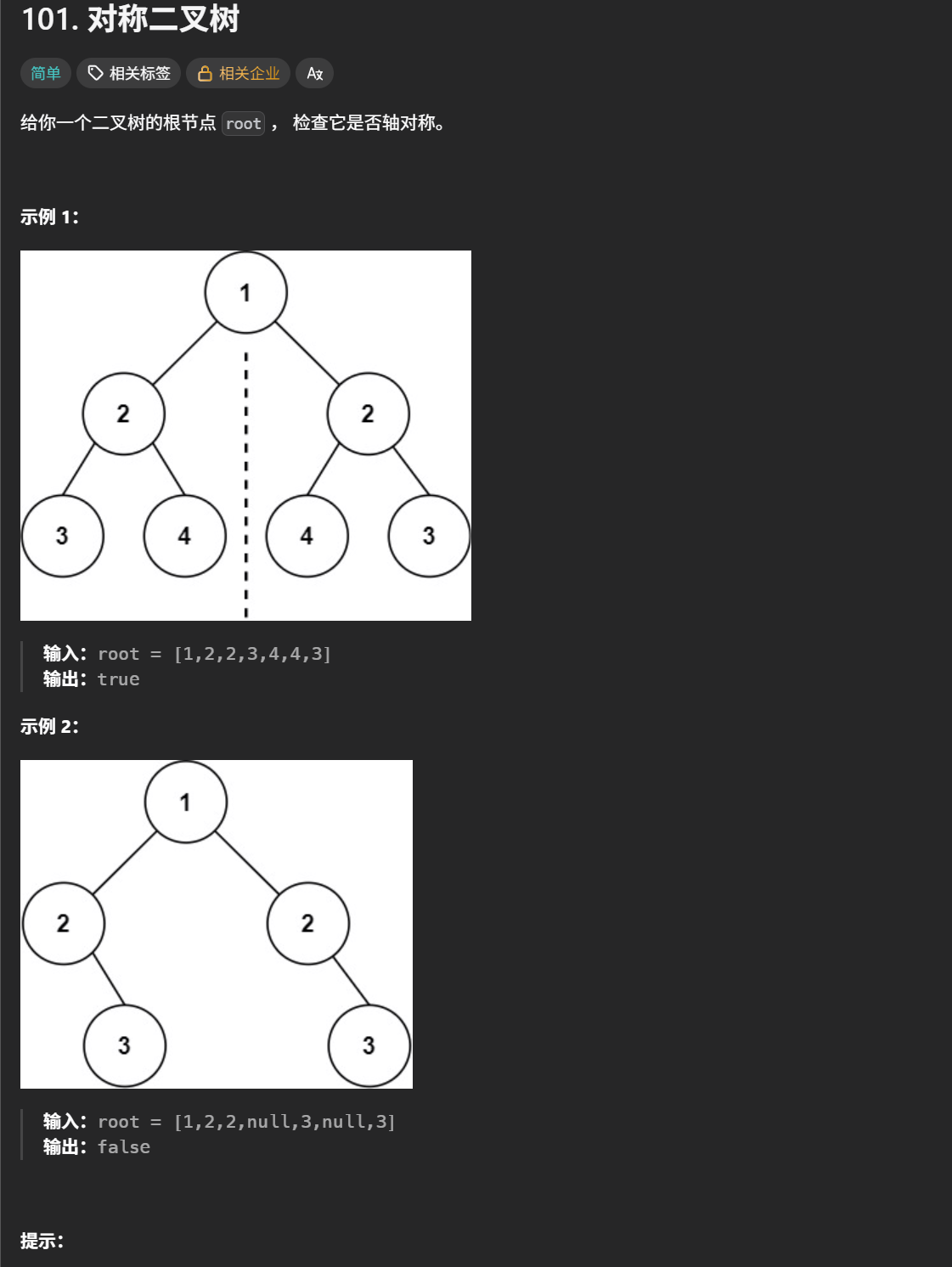 (3)如果左右都对称就返回true,一侧不对称就返回false;