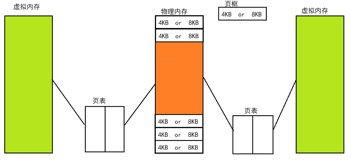 操作系统将把物理内存按一个固定长度的页框进行切割管理,也可以叫物理页,每个页框内含一个物理页,在32位操作系统下,每个页框大小为4KB;在64位操作系统下,每个页框大小为8KB。