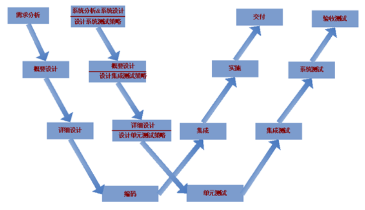 局限:仅仅把测试过程作为编码之后的一个阶段,忽视了测试对需求分析,系统设计的验证,如果前面设计错误,得一直到后期的验收测试才被发现,耗时耗力。