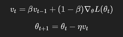 for batch in data_loader:grad = compute_gradient(Loss, θ, batch)v = beta * v + (1 - beta) * gradθ = θ - lr * v