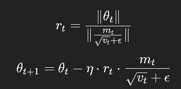 在 Adam 的基础上,对每一层引入了自适应的归一化因子: