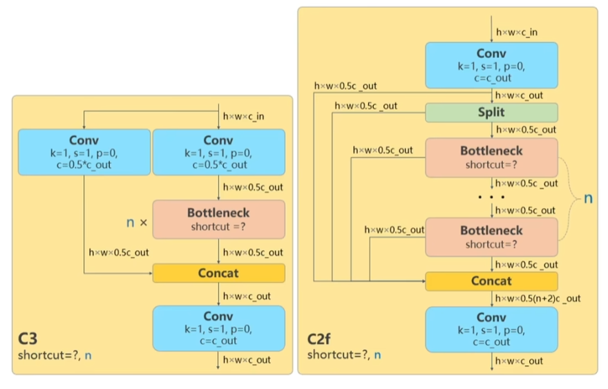 C2f 用“劈叉-并行-串接”代替 C3 的“整块-串行”,同样深度却更少参数、更快推理、更好梯度回传