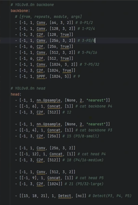 YOLOv8的Backbone类似于YOLOv5的Backbone,不同点是将C3换成了C2F,以及将第一个Convolution层设置为kernel size等于3,stride为2(YOLOv5的Kernel Size为6,padding为2)。