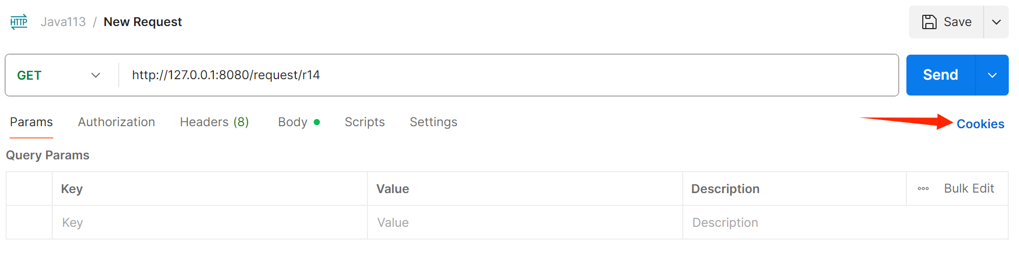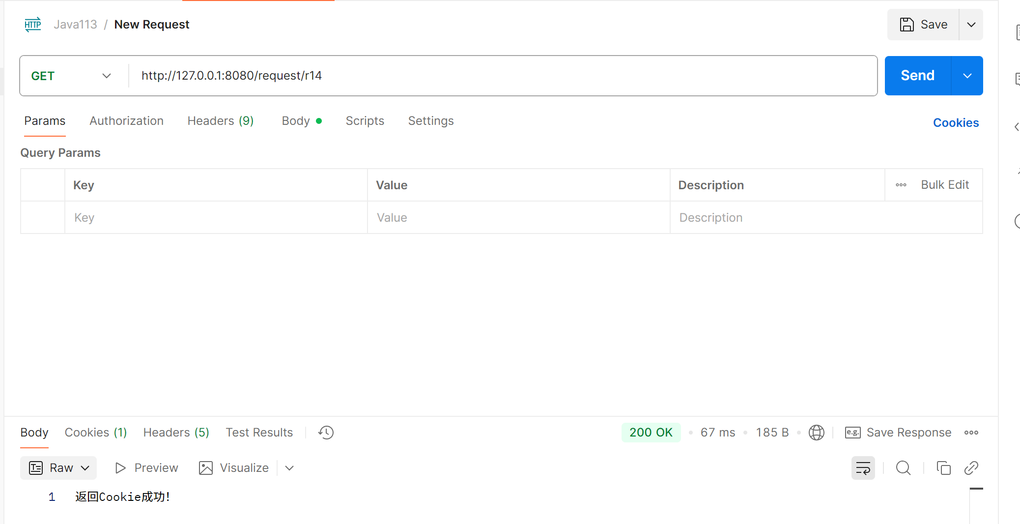 public String r14(HttpServletRequest request, HttpServletResponse response){Cookie[] cookies = request.getCookies();if (cookies != null) {for (Cookie cookie: cookies) {System.out.println(cookie.getName() + ':' + cookie.getValue());}}return "返回Cookie成功!";