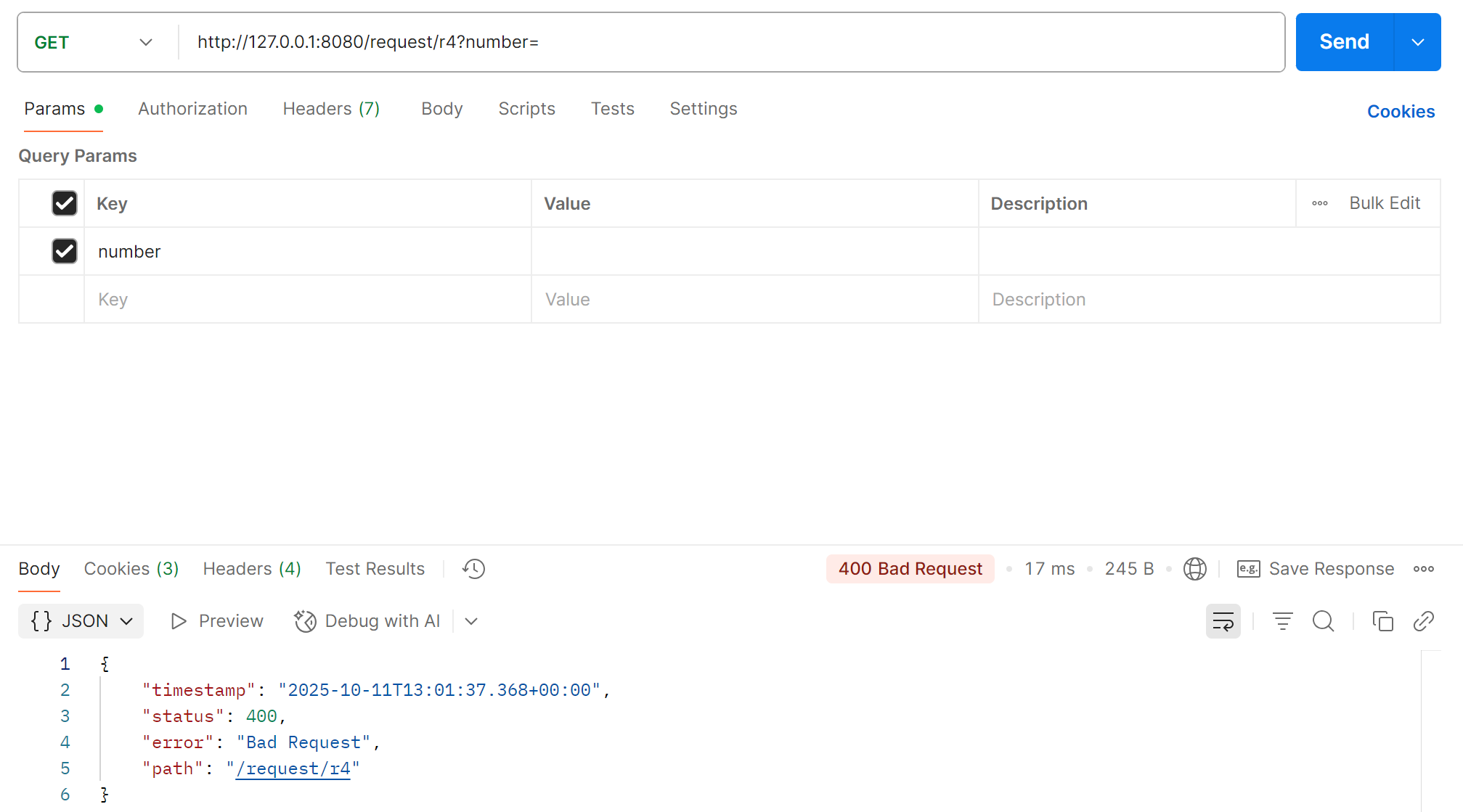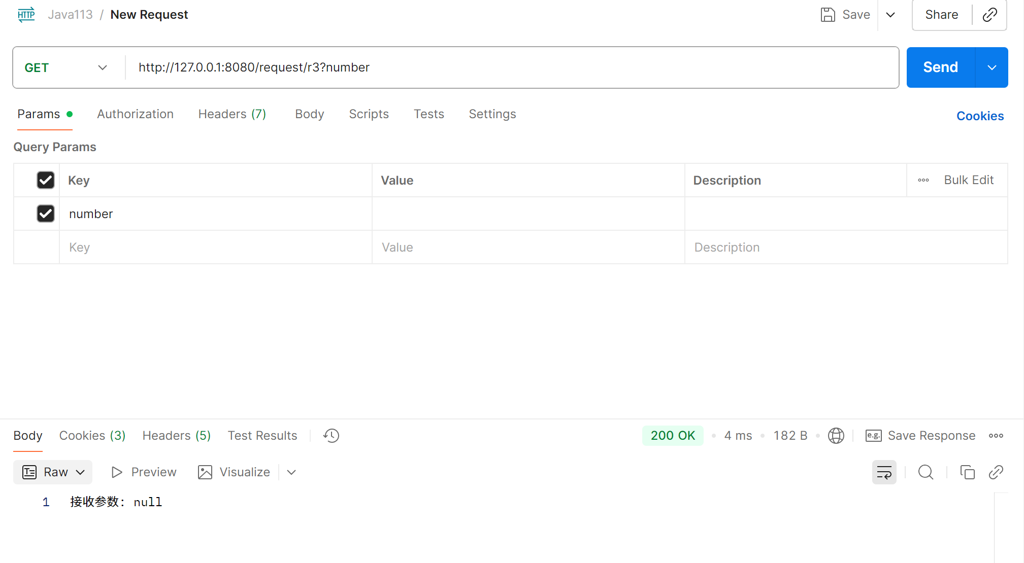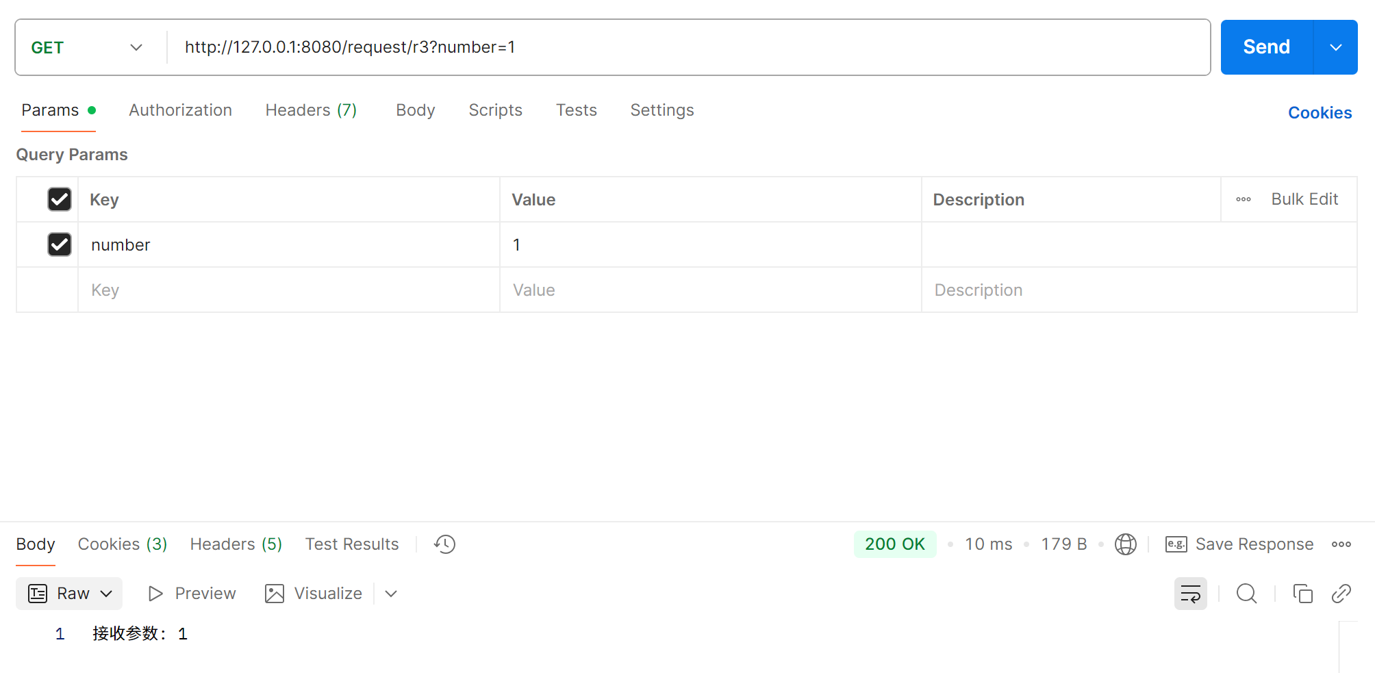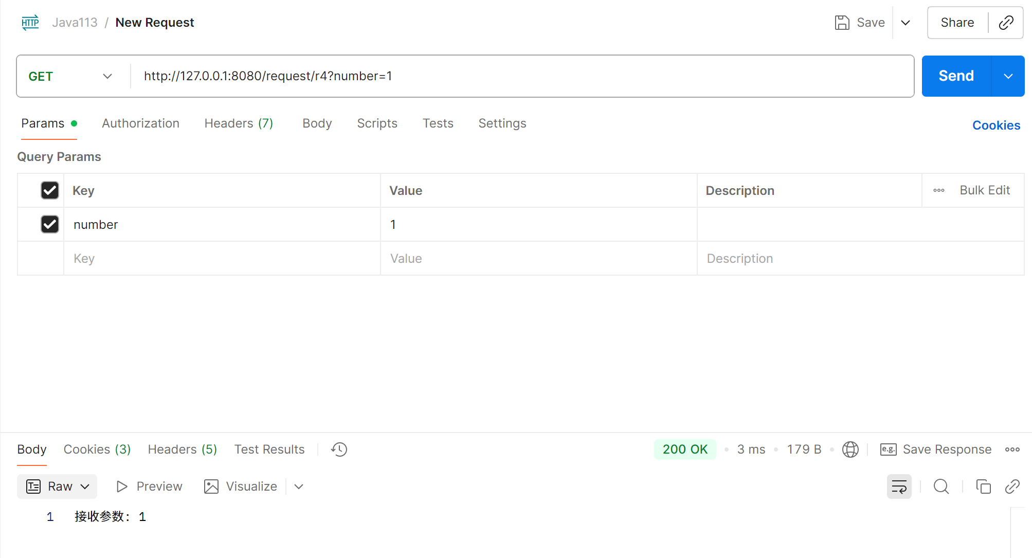 @RequestMapping("/r4") public String r4(int number){return "接收参数: " + number; }