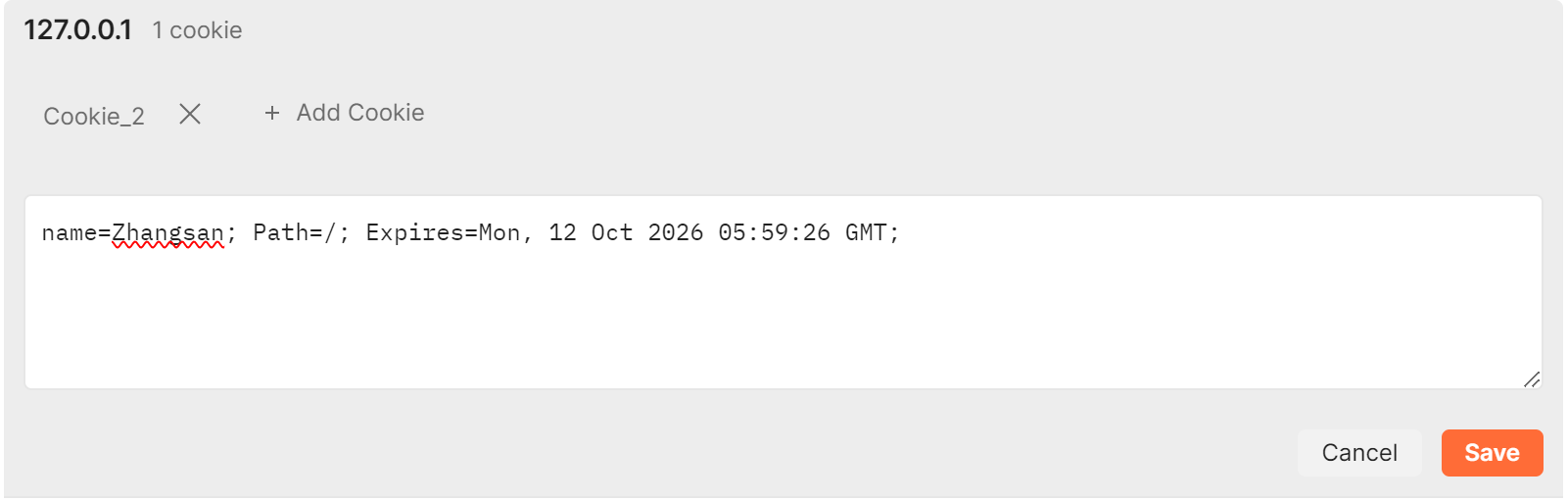 也可以添加多个Cookie值。