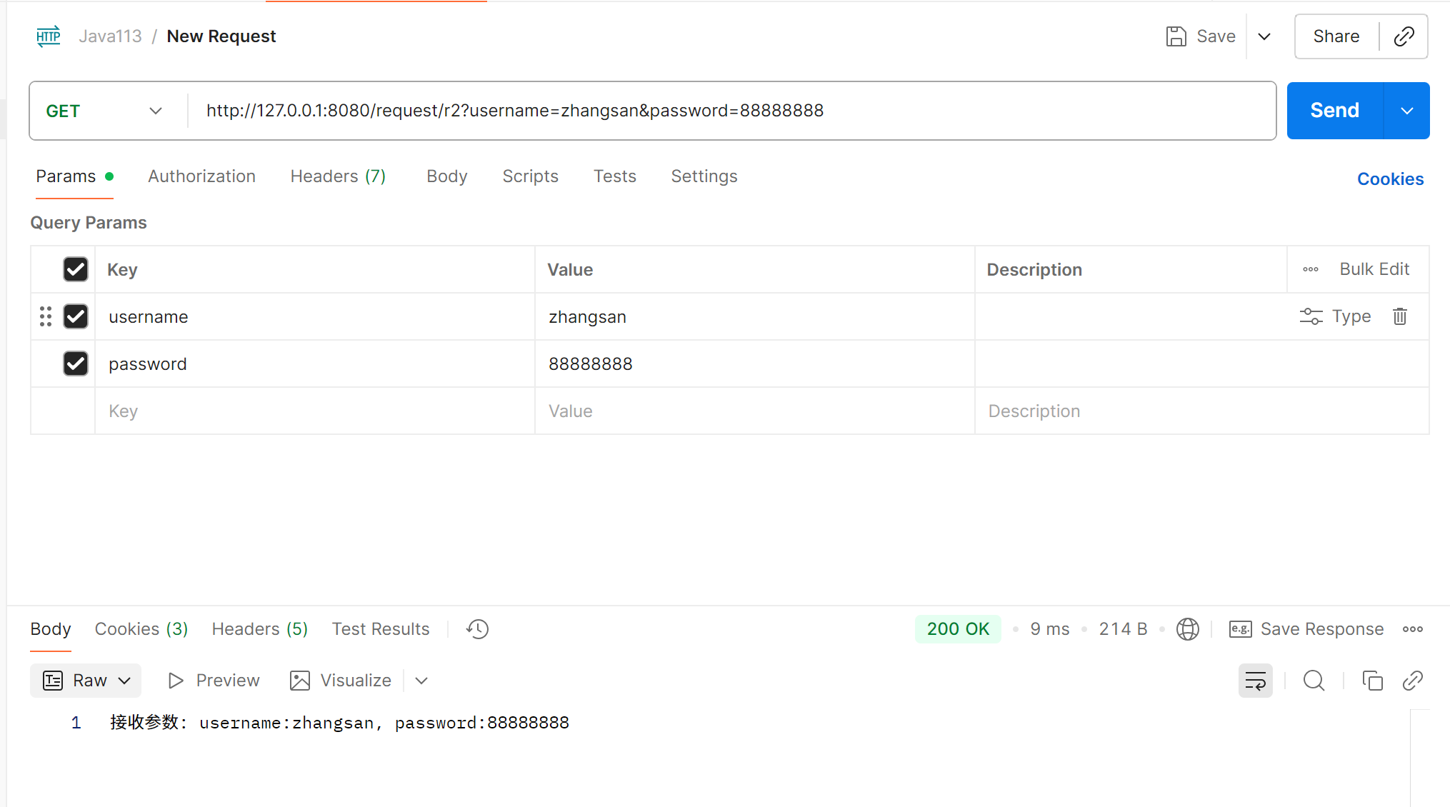 public String r2(String username, String password){return "接收参数: username:" + username + ", password:" + password;