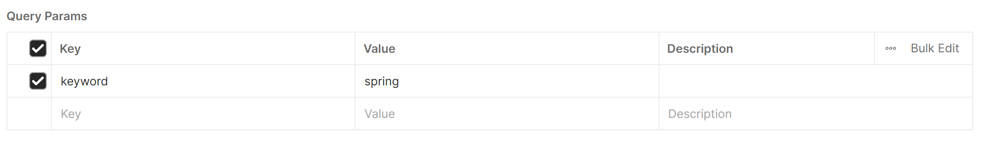 可以在URL中自定义keyword=spring访问地址: