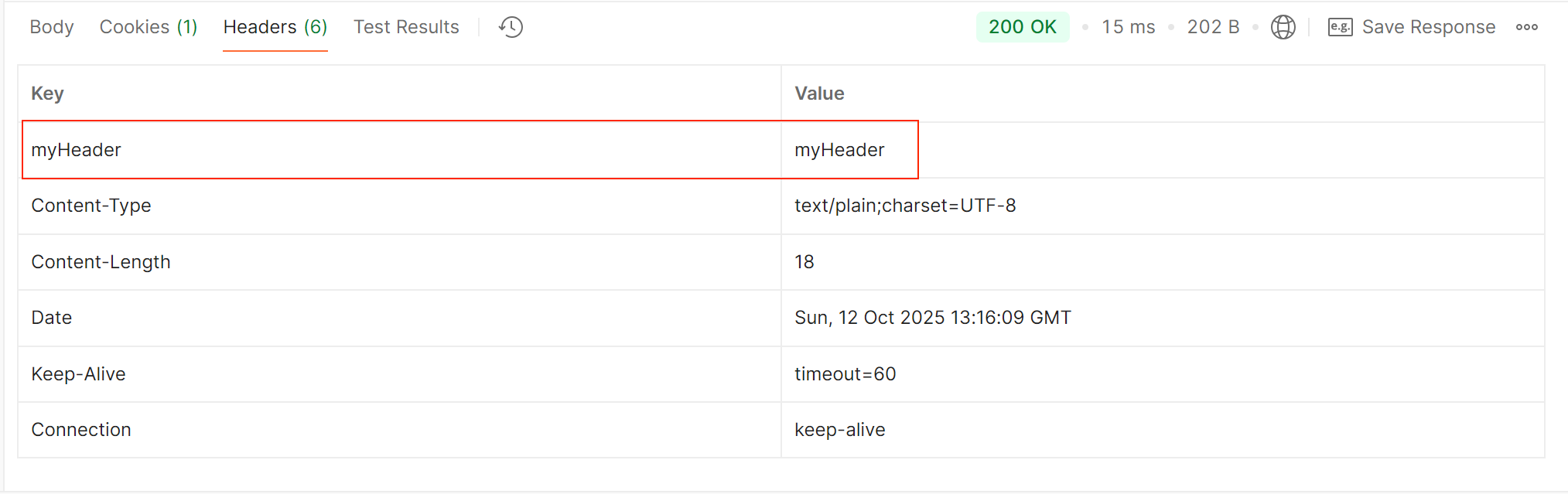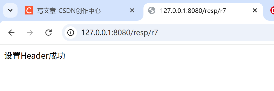 public String setHeader(HttpServletResponse response) {response.setHeader("myHeader", "myHeader");return "设置Header成功";