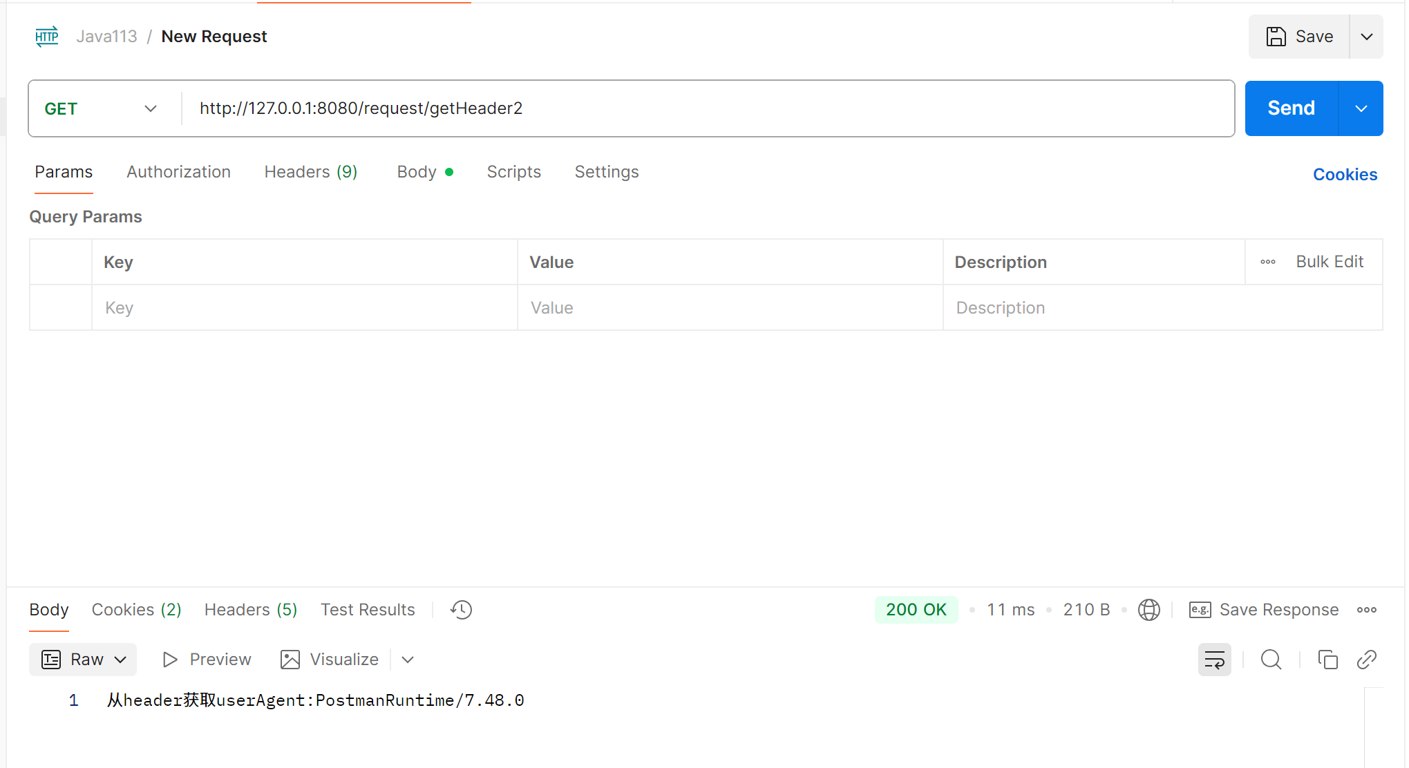 public String getHeader2(@RequestHeader("User-Agent") String userAgent) {return "从header获取userAgent:" + userAgent;