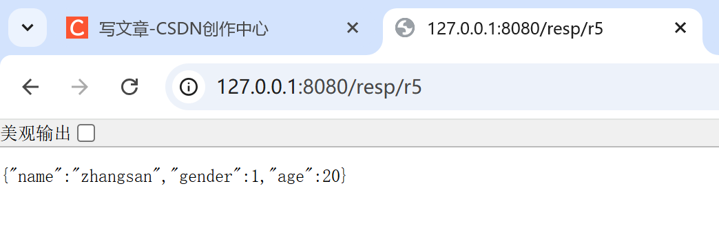 - 默认使用@ResponseBody注解效果,无需显式声明。