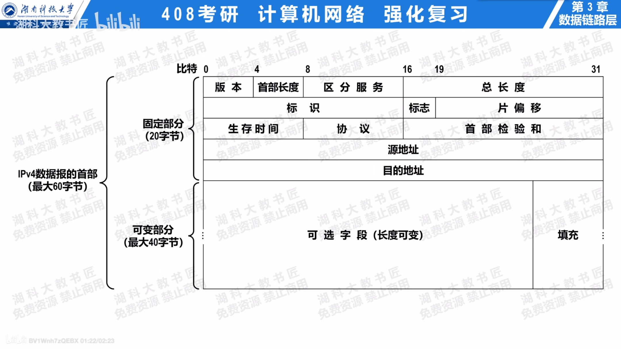 IPv4:418首总偏,首部长度固定部分20B,可变部分0-40B