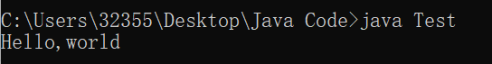 3.现在我们可以使用java命令来运行程序,这个过程会把程序加载到JVM(java虚拟机)进行输出。注:在我们安装JDK的时候就已经安装了JRE(java运行时环境)和JVM(java虚拟机)