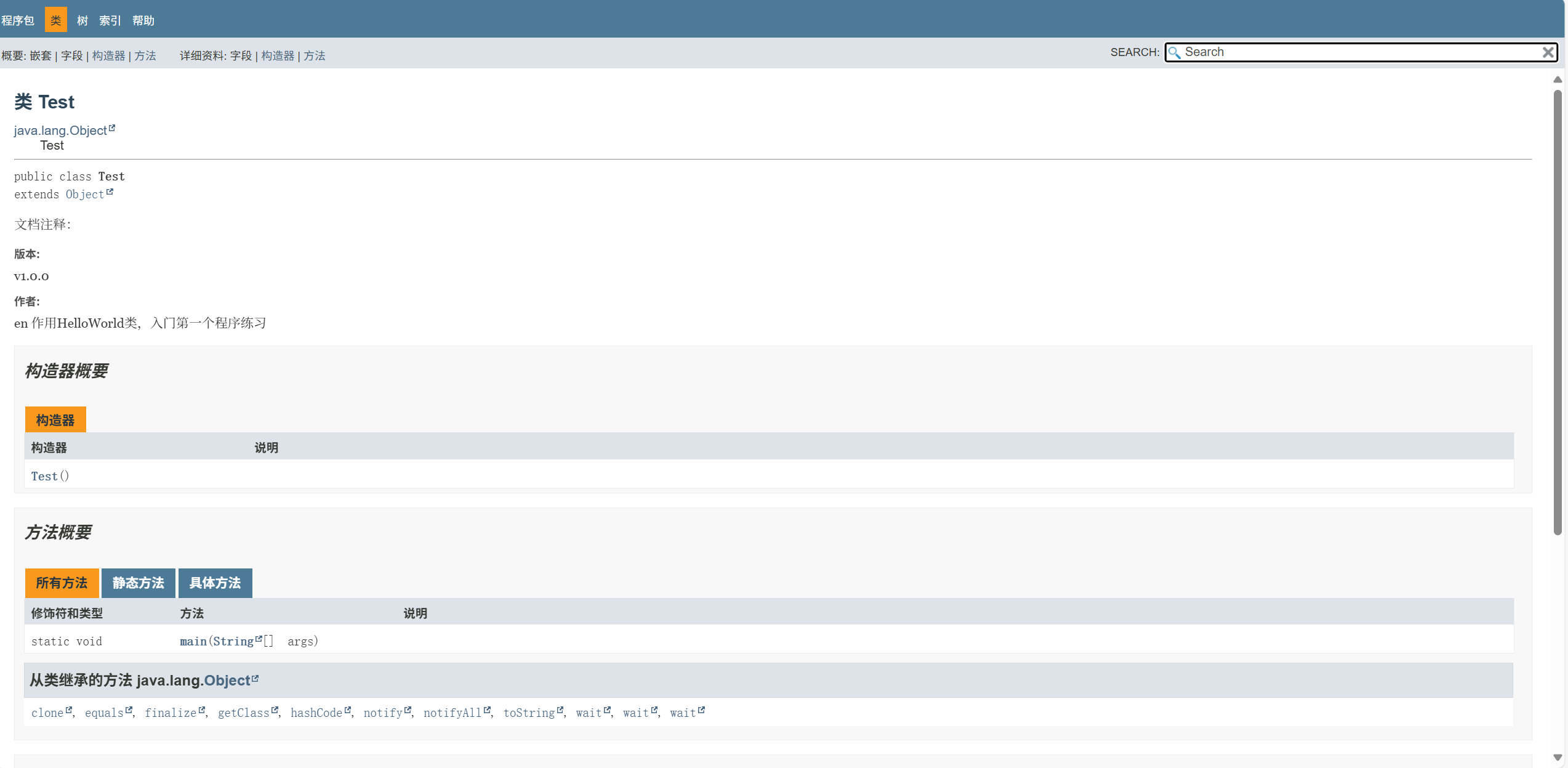 // javadoc -d myHello -author -version -encoding GB18030 -charset UTF-8 Test.java