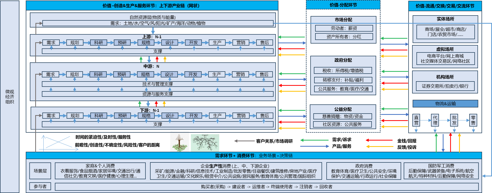 核心功能:通过市场交易实现商品所有权转移,连接生产与消费。