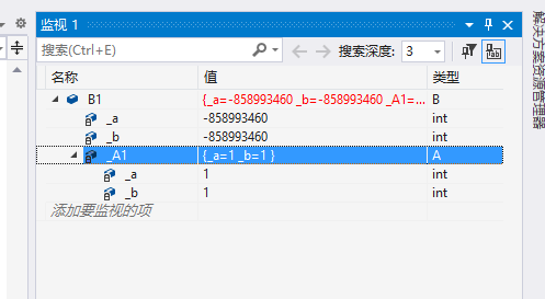 class B {private:int _a;int _b;A _A1;