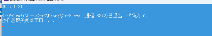 {date a1(2004, 01, 21);date a2(2025, 01, 21);//a1.Print();//a2.Print();a1 = a2;a1.Print();return 0;