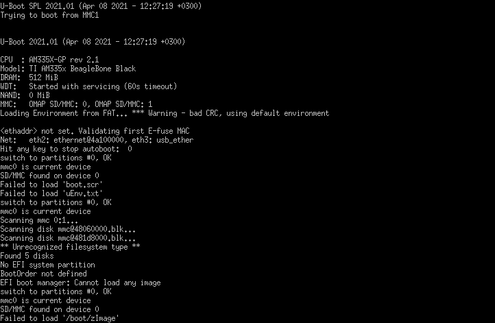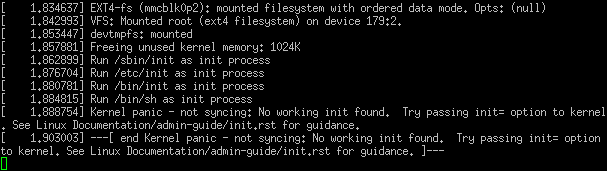 如果您仅使用 FAT 分区的上述文件运行 BeagleBone Black,则内核将因缺少 init 而崩溃,并且通常由于 rootfs(即根文件系统)为空而崩溃。