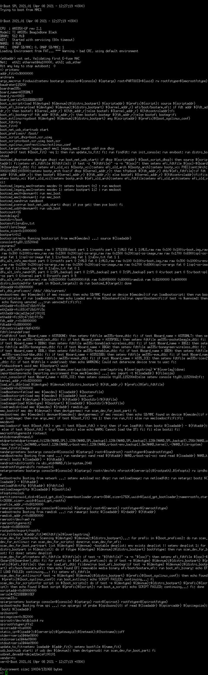 uenvcmd=run set_mmc1; run set_bootargs;run loadimage;run loadfdt;printenv bootargs;bootz ${loadaddr} - ${fdtaddr}