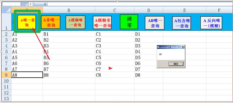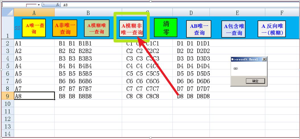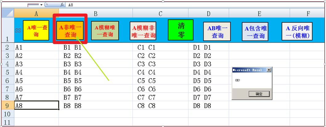 当然,上面的例子是记录唯一的情况,那么记录不唯一呢?正如我给出的资料中有几个A1的信息,这时怎么办呢?你只需要轻点按钮“非唯一查询”按钮就可以实现了:看下面的截图: