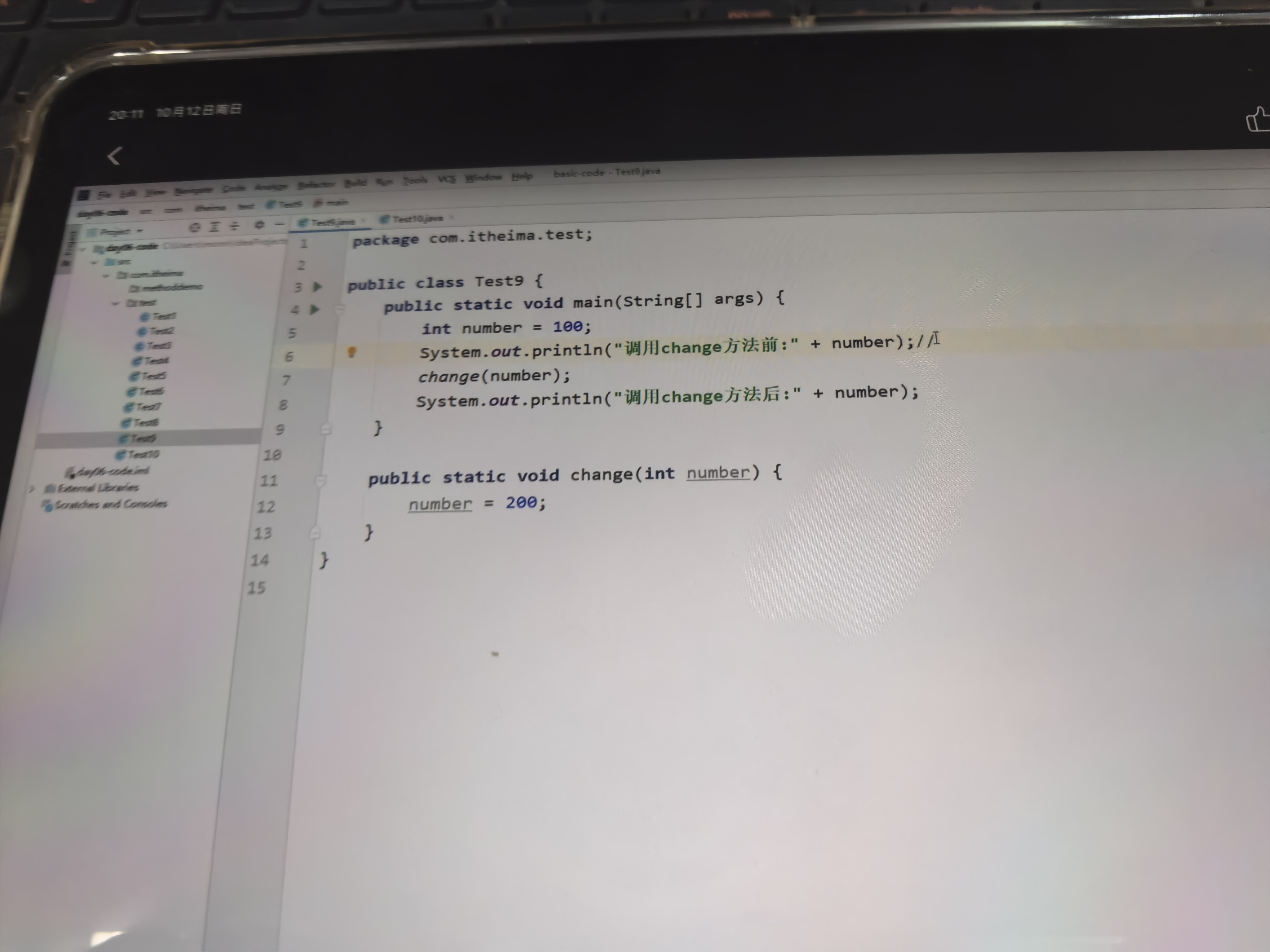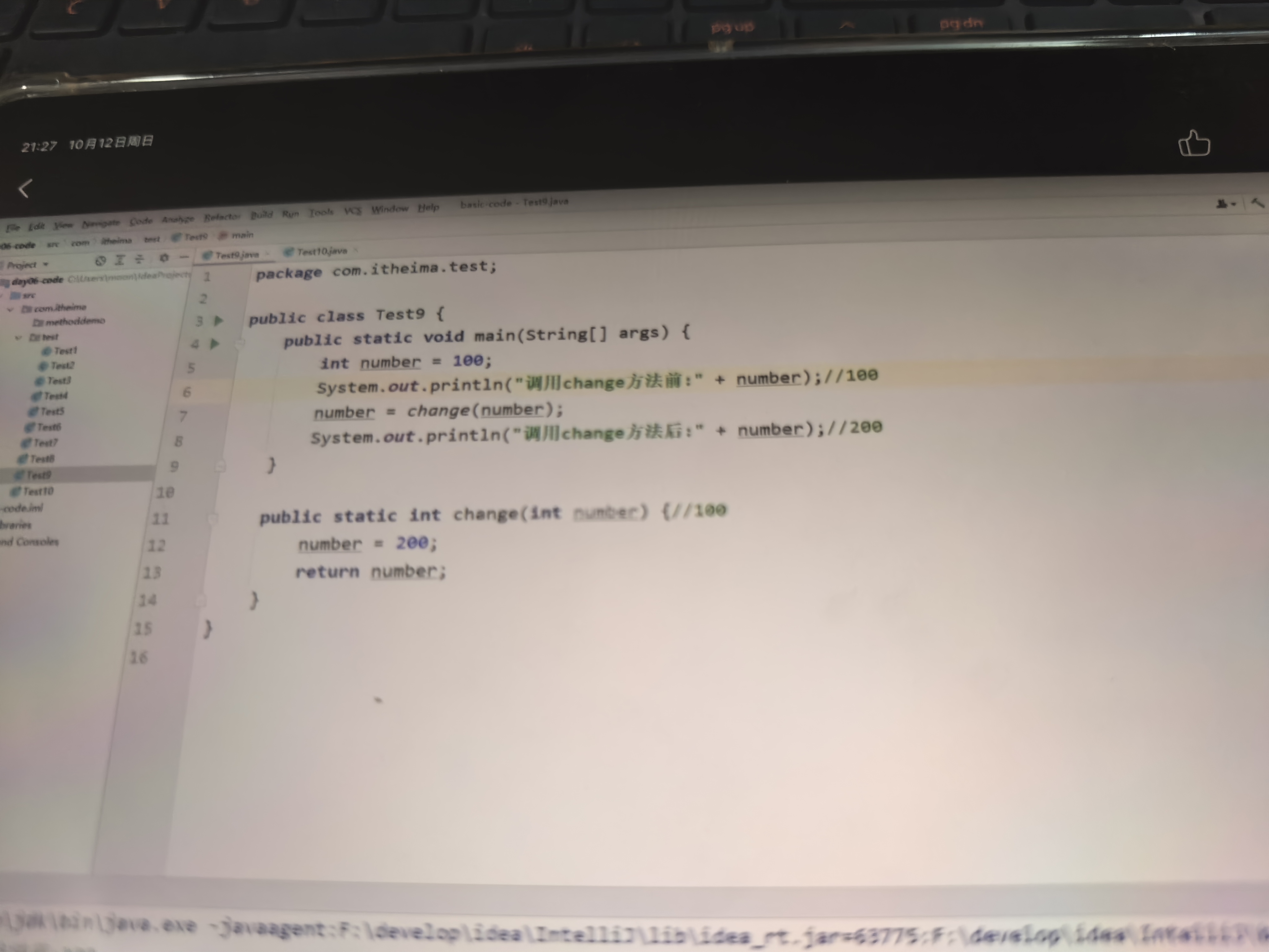 首先先定义了一个参数number,它的值是100,调用change方法,传过去的形参number是一百,然后后面覆盖方法中的number等于200。