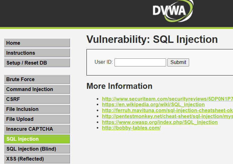 最近在学习内网和系统方面的知识,有一段时间没有接触web方面的知识了,这里我就通过DVWA来进行复习,避免太久没有接触而生疏了。这里来记录一下过程。DVWA是什么这里就不介绍了。刚接触网安必接触的一个好的靶场。废话不多说,这里直接开始。