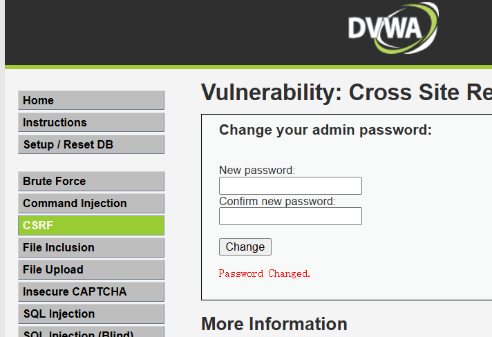 3、Vulnerability: Cross Site Request Forgery (CSRF)