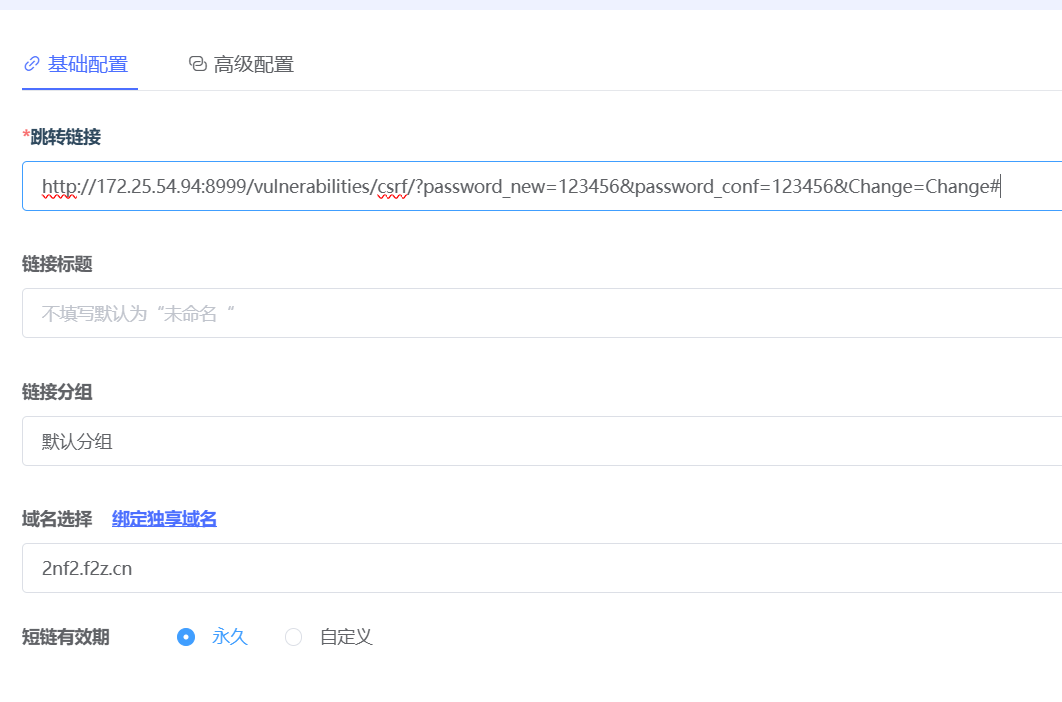 然后将此链接变成短链接诱导用户访问,然后即可更改密码