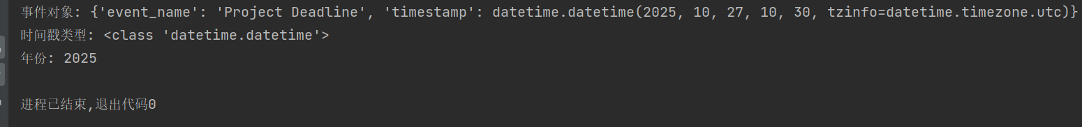 event = json.loads(json_string, object_hook=datetime_decoder)print(f"事件对象: {event}")