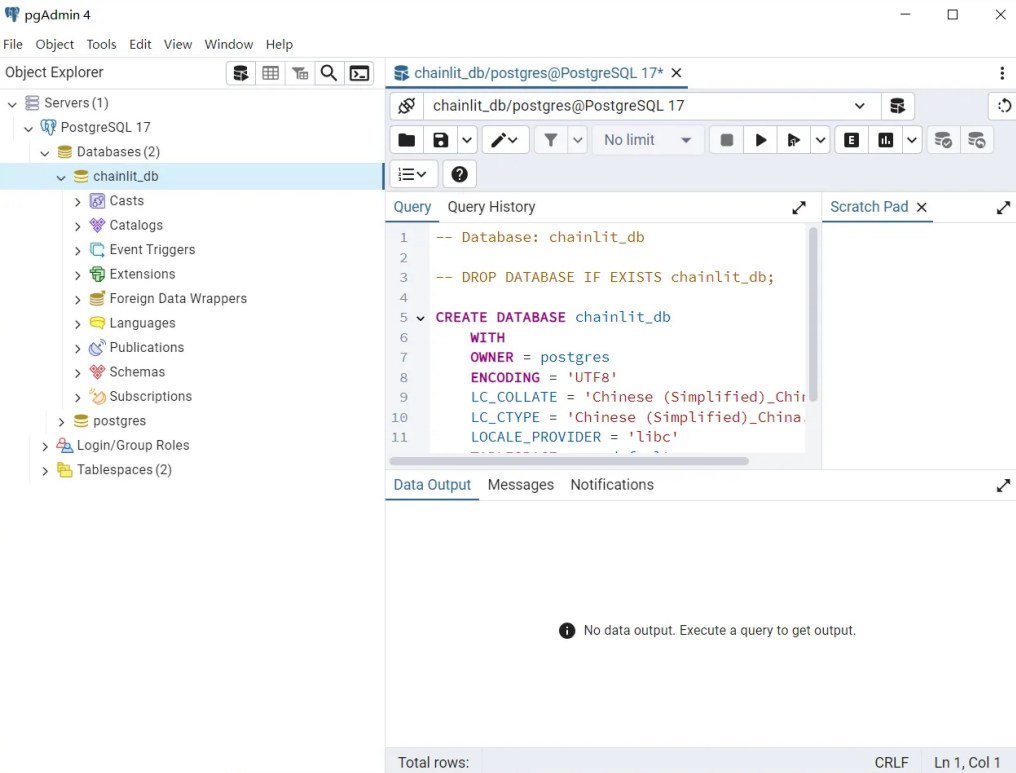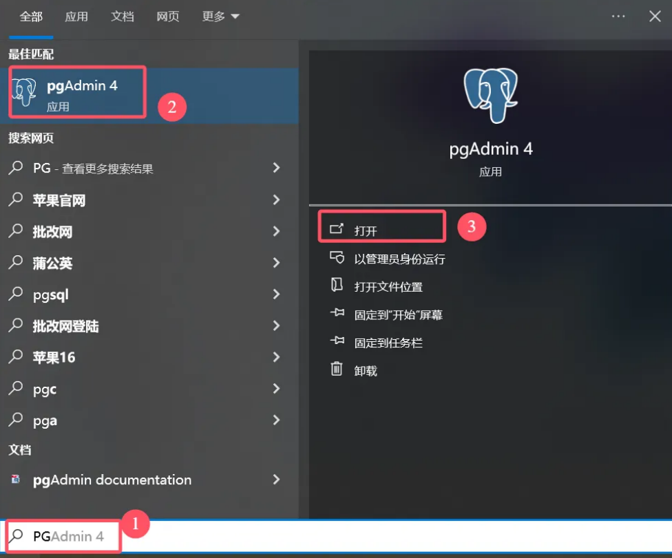 PostgreSQL 自带 pgAdmin4 可视化工具,方便创建数据库和执行 SQL 脚本: