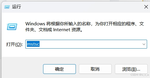2.回到物理机,打开运行,(windows系统可以使用快捷键win + R),输入mstsc,回车