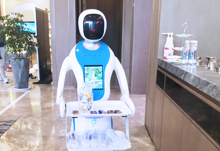 触想工业安卓一体机在人工智能领域上的应用-酒店餐厅机器人送餐服务
