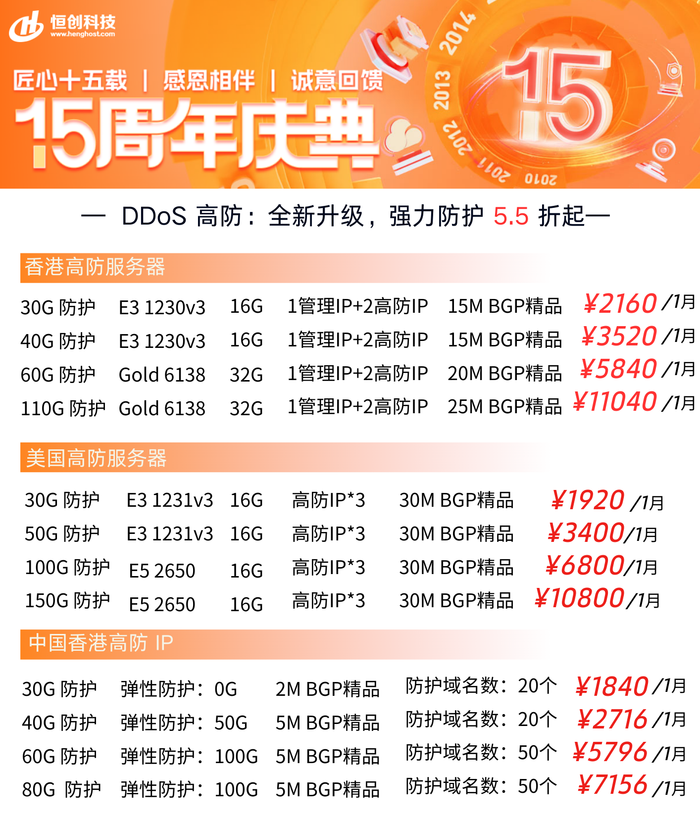 香港高防服务器价格范围