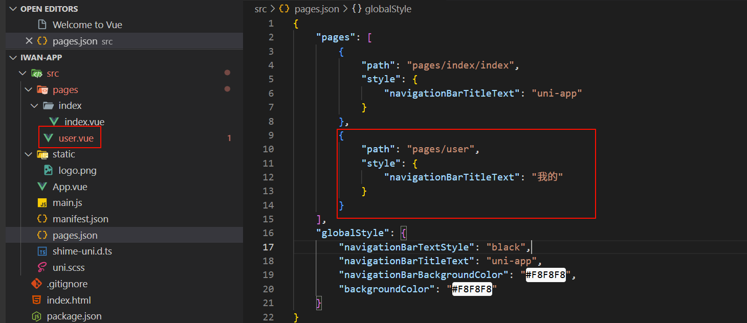 和 pages.json