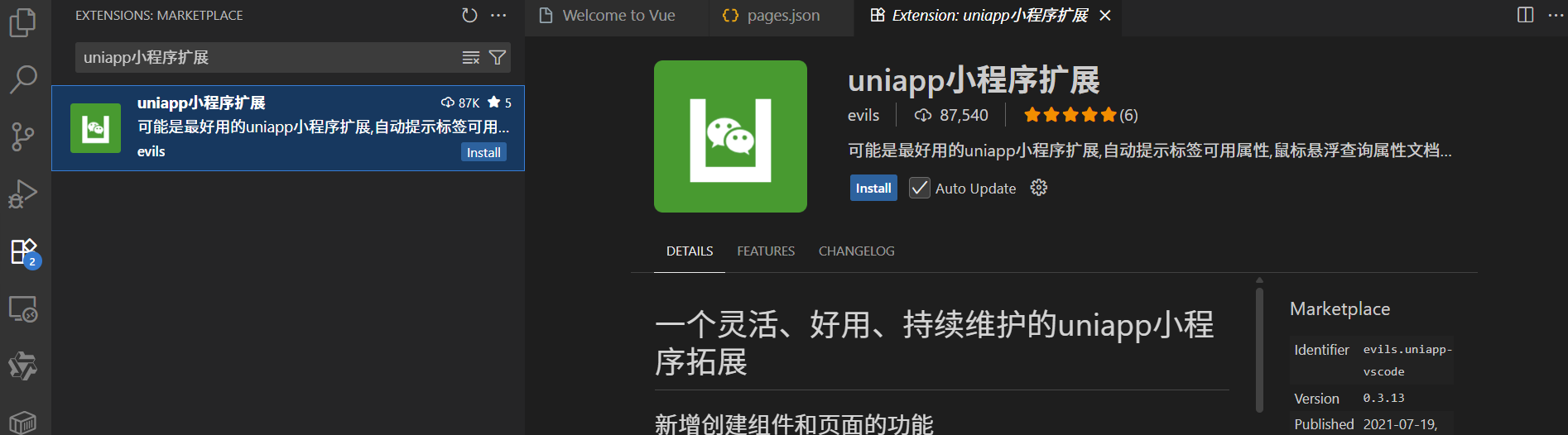 (三)安装 uniapp 小程序扩展