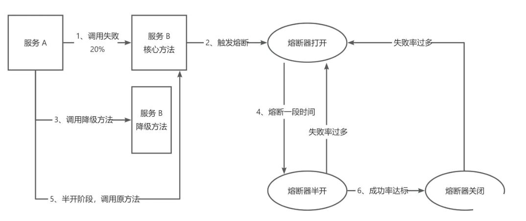 这类似于电路中的断路器,当检测到异常,熔断器会自动切断对故障服务的调用,防止问题扩大。