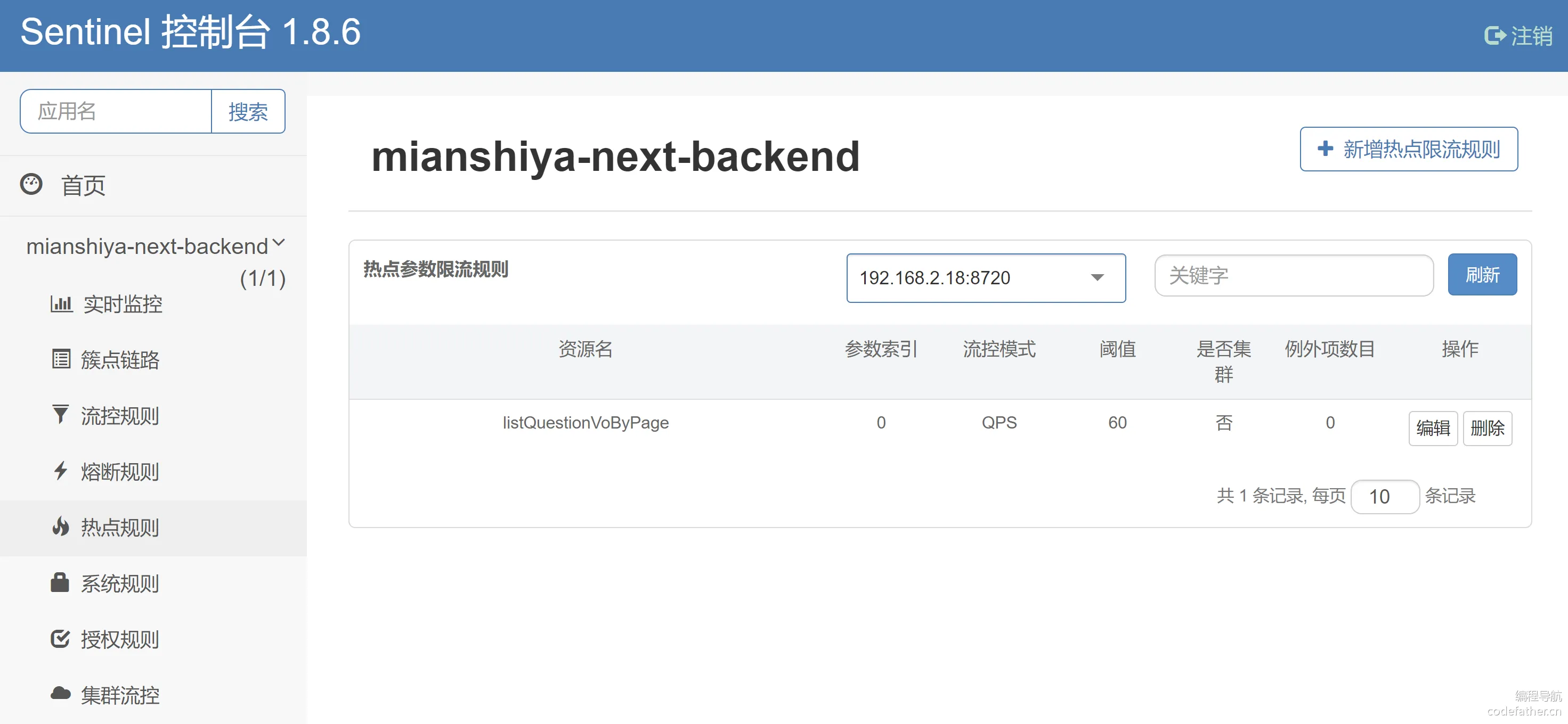 :热点参数(IP地址),用于实现"每个IP单独限流"相当于在说:"我要访问 listQuestionVOByPage 这个资源,来自 IP=remoteAddr 的请求"