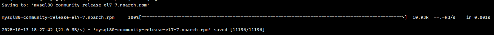 wget -c http://dev.mysql.com/get/mysql80-community-release-el7-7.noarch.rpm