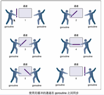 - 第 4步和第 5 步,进行交换,并最终,在第6步,两个goroutine 都将它们的手从通道里拿出来,这模拟了被锁住的 goroutine 得到释放。两个 goroutine 现在都可以去做其他事情了。
