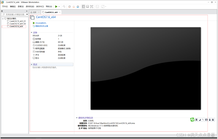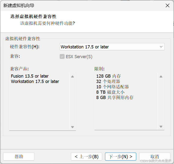 这里要注意兼容性,如果是VMware17创建的虚拟机复制到比当前版低或者更低的版本会出现一不兼容的现象。如果是用VMware16创建的虚拟机在VMware17中打开则不会出现兼容性问题。
