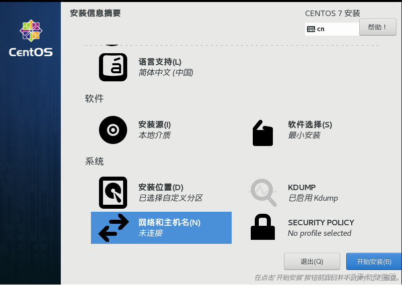 选择第一项,安装直接CentOS 7,回车,进入下面的界面。如下图所示: