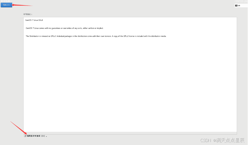 安装完成重启之后,进入系统前会有一个许可证的确定,如下图所示: