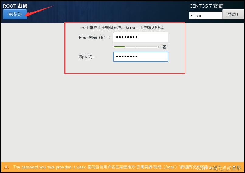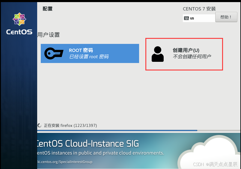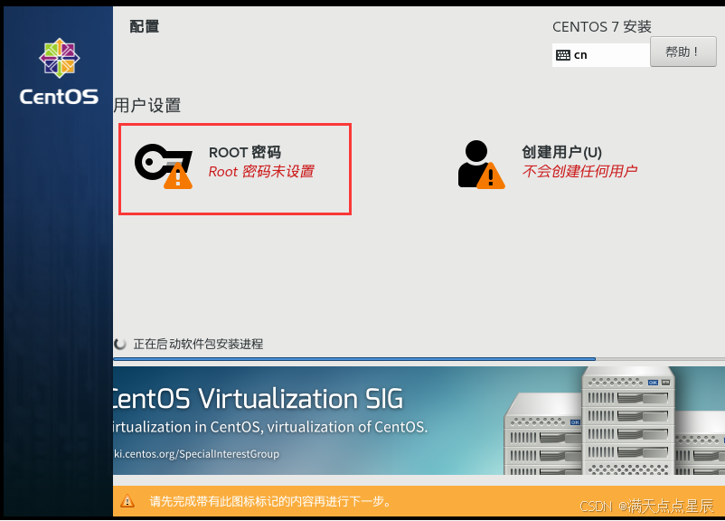 在等待安装过程中,可以设置一下root密码。如下图所示: