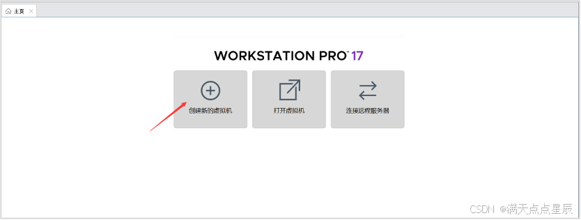 双击打开“VMware Workstation Pro”,并创建新的虚拟机。如下所示: