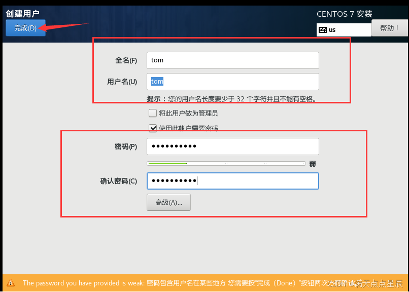 root用户密码创建好之后,可以再创建一个普通用户。如下图所示:
