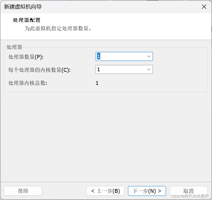这次只做安装安装CentOS演示,所以处理器与核心默认都选1,点击“下一步”